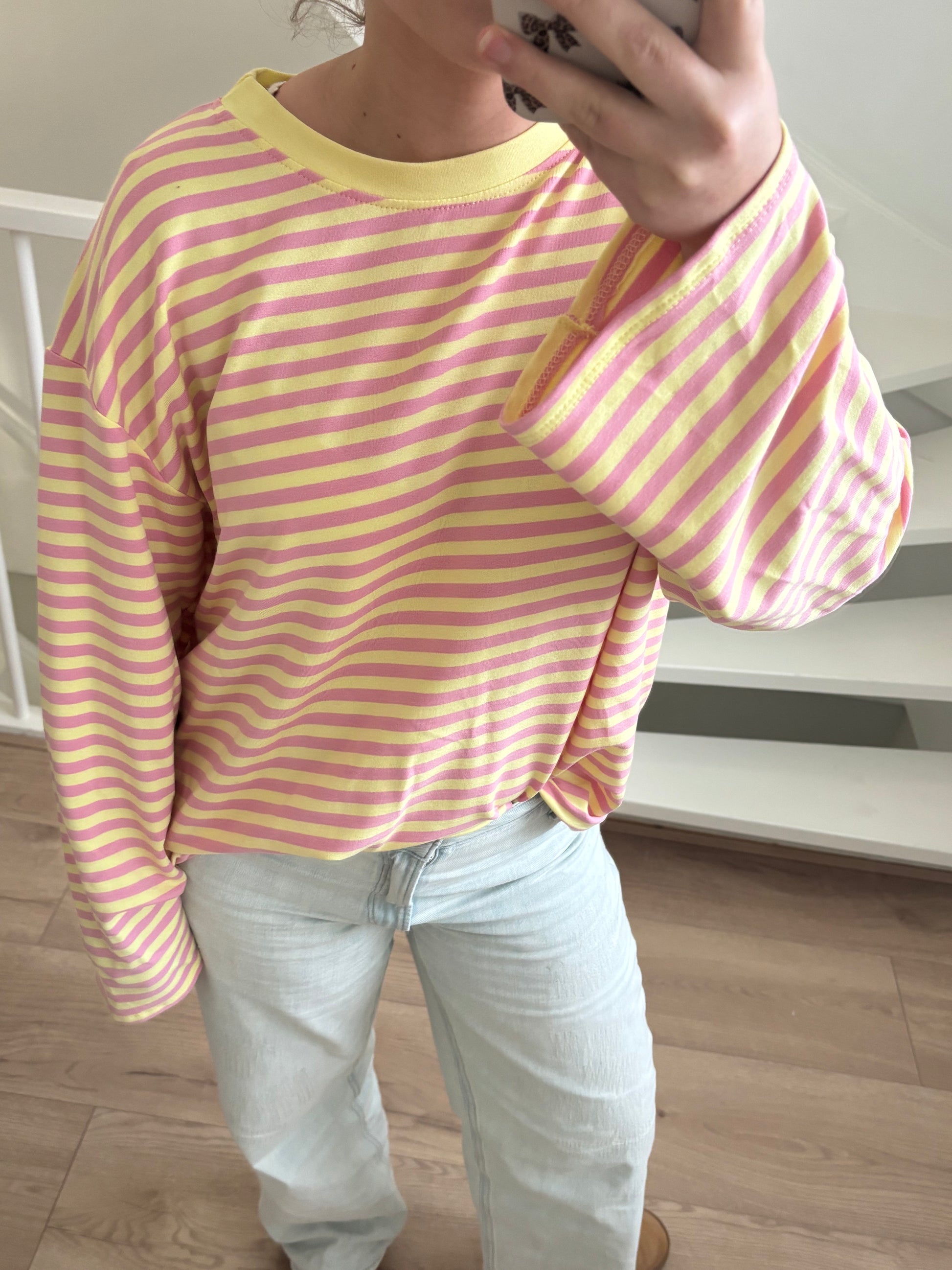 Stripe longsleeve geel/roze